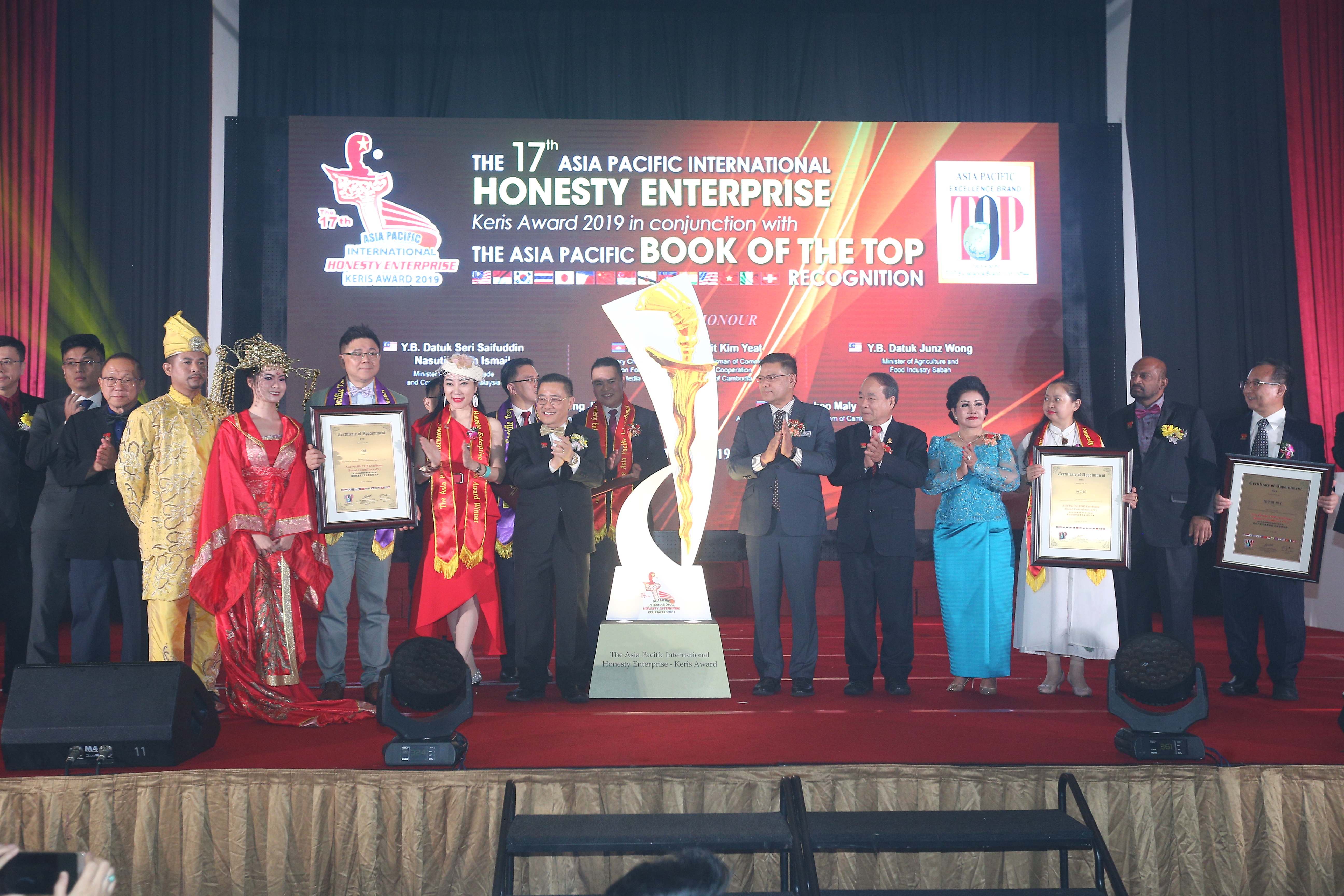 本届大会的亚太国际诚信企业金剑奖颁授了诚信企业家大奖、诚信服务品质大奖、诚信企业大奖、诚信品牌大奖、诚信产品大奖;亚太杰出品牌国际纪录大全得主则包括了亚洲年度最佳网络行销、亚洲100最受喜爱产品、亚太杰出品牌、亚太杰出品牌(电子商务)、亚太卓越服务品质、亚太杰出新锐企业家、亚太杰出金牌产品、亚太杰出企业财智新女性、亚太杰出总裁、亚太国际健康大使与亚太超级健康品牌。