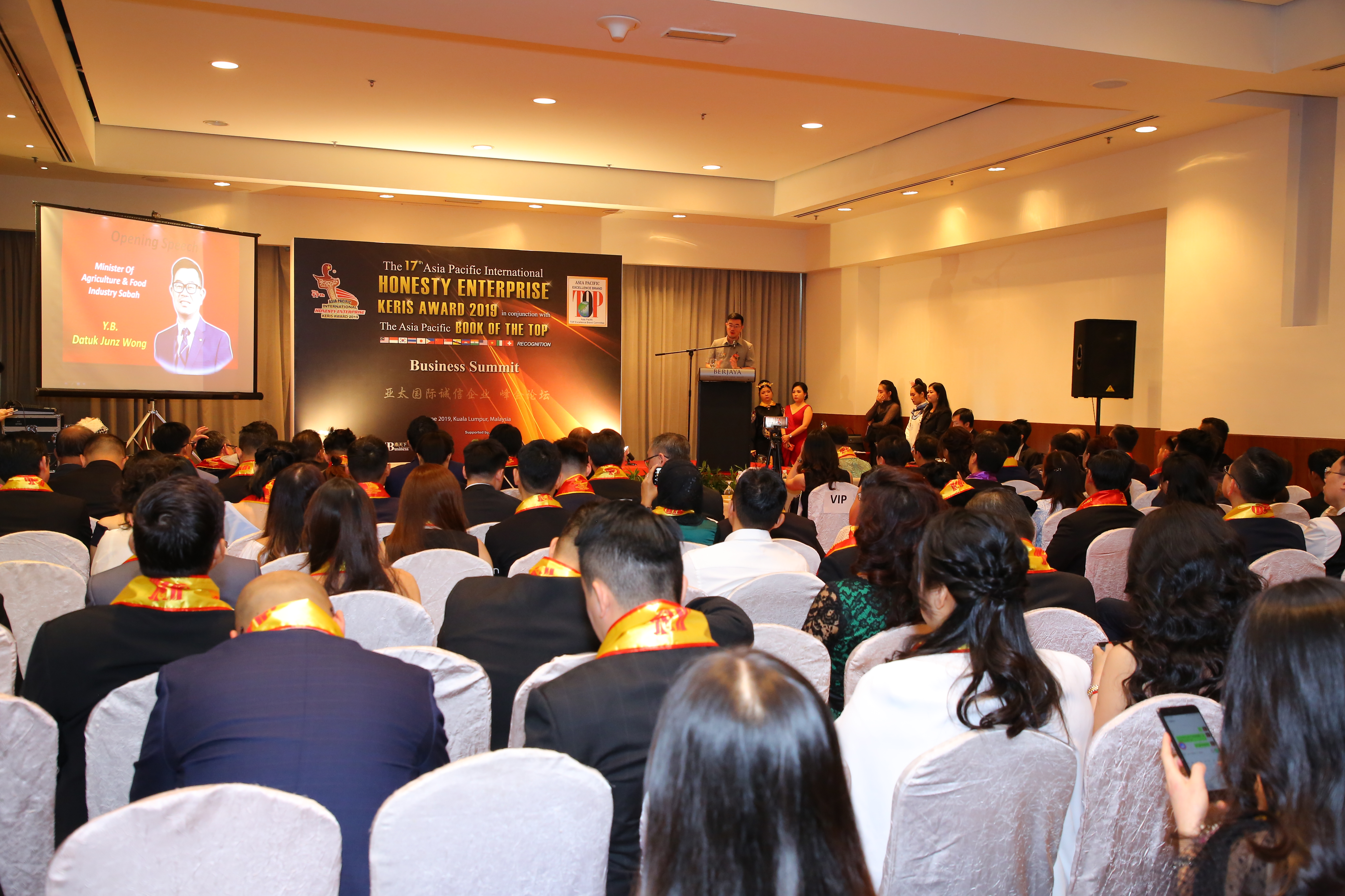 在亚太会总主席拿督陈宥全博士教授与尊敬的拿督斯里赛夫汀纳苏申部长发表致词后,开幕典礼点燃序幕。大门缓缓开启,汉丽宝公主身坐龙轿进场,并在马六甲苏丹的迎接下,将金剑交予拿督斯里赛夫汀纳苏申部长,接着拿督斯里赛夫汀纳苏申部长将金剑嵌入模型闪亮能量后,宣告着亚太杰出品牌国际纪录大全暨2019年第17届亚太国际诚信企业金剑奖颁奖典礼正式掀开帷幕!