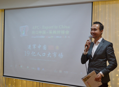 亚太会获中国政府国有大型粮油购销企业(供应近2亿人口的粮食需求)获委任授权,于全马各大城市主办 “出口中国-采购对接会”,是为了解认识东盟的产品及供应商,完成近亿万马币的年度采购定额。中国国有大型粮油购销企业,负责相邻省市近2亿人口,粮食集散、配送及中转交易。业务涵盖粮油收购、储运、加工、经营、配送、中转物流;批发兼零售,货物进出口。