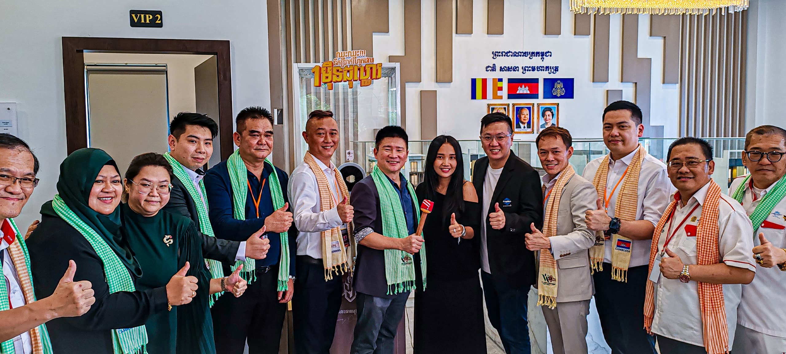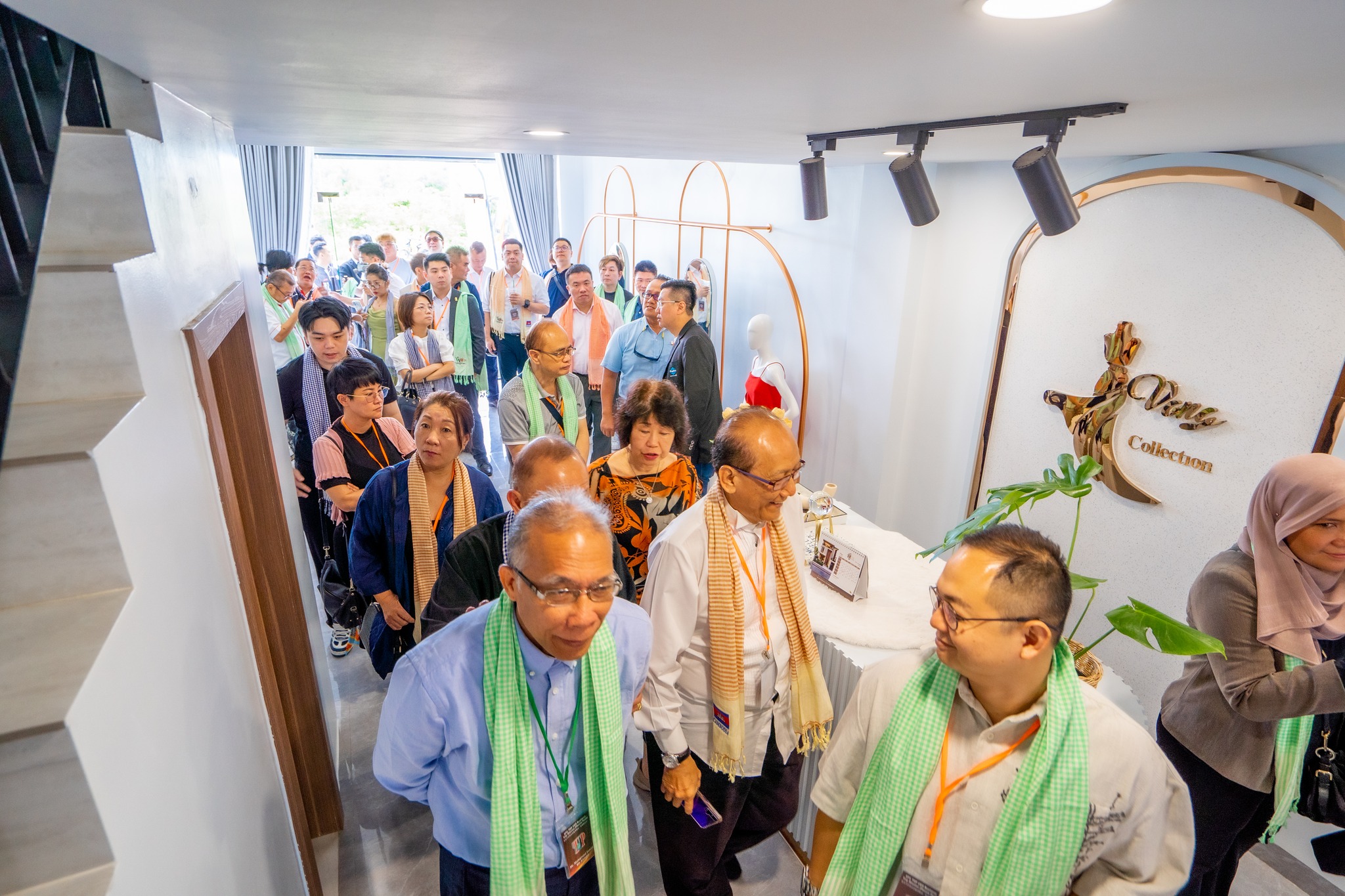 亚太会商务考察团(柬埔寨金边)专程拜会了柬埔寨杰出年轻女企业家、V.I Land Investment Co., Ltd(前称 Bossba 控股集团)创办人兼董事长Srey Net Meurn。团员们一抵达集团展示厅,即获赠柬埔寨最具特色的围巾及咖啡,感受到了宾至如归的热情款待。